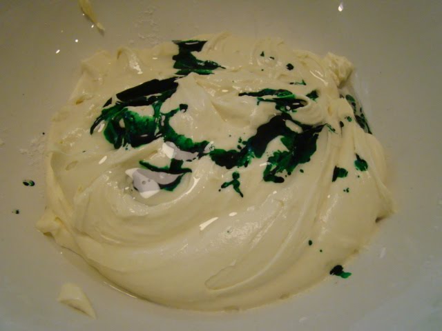 Okay, so this is where I got a little carried away (just a little?) I lack self control when it comes to using food color, I know this about myself but I always seem to find myself in this predicament. The recipe said, just a small amount of the green food coloring, for a 'natural' effect, oh well too late now. I should just swear off the stuff.