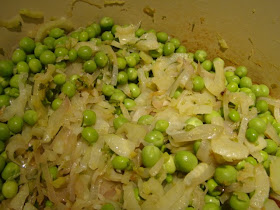 Finding English peas at my market inspired me to make this special springtime soup. I also found large spring scallions and fennel which are naturals with peas. I like the dark flecks of green from the chopped fresh mint that I added before pureeing the vegetables. I like this soup served warm and I like it thick and blended on the chunkier side. However, the soup can be thinned with more broth. Fresh pea soup is a nice starter for a spring dinner party featuring leg of lamb for the entrée or all by itself with fresh bread like, Italian Rosemary Buns. This is a simple soup to make with the only time consuming part being the shelling of the fresh peas and they can be substituted with frozen petite peas.
